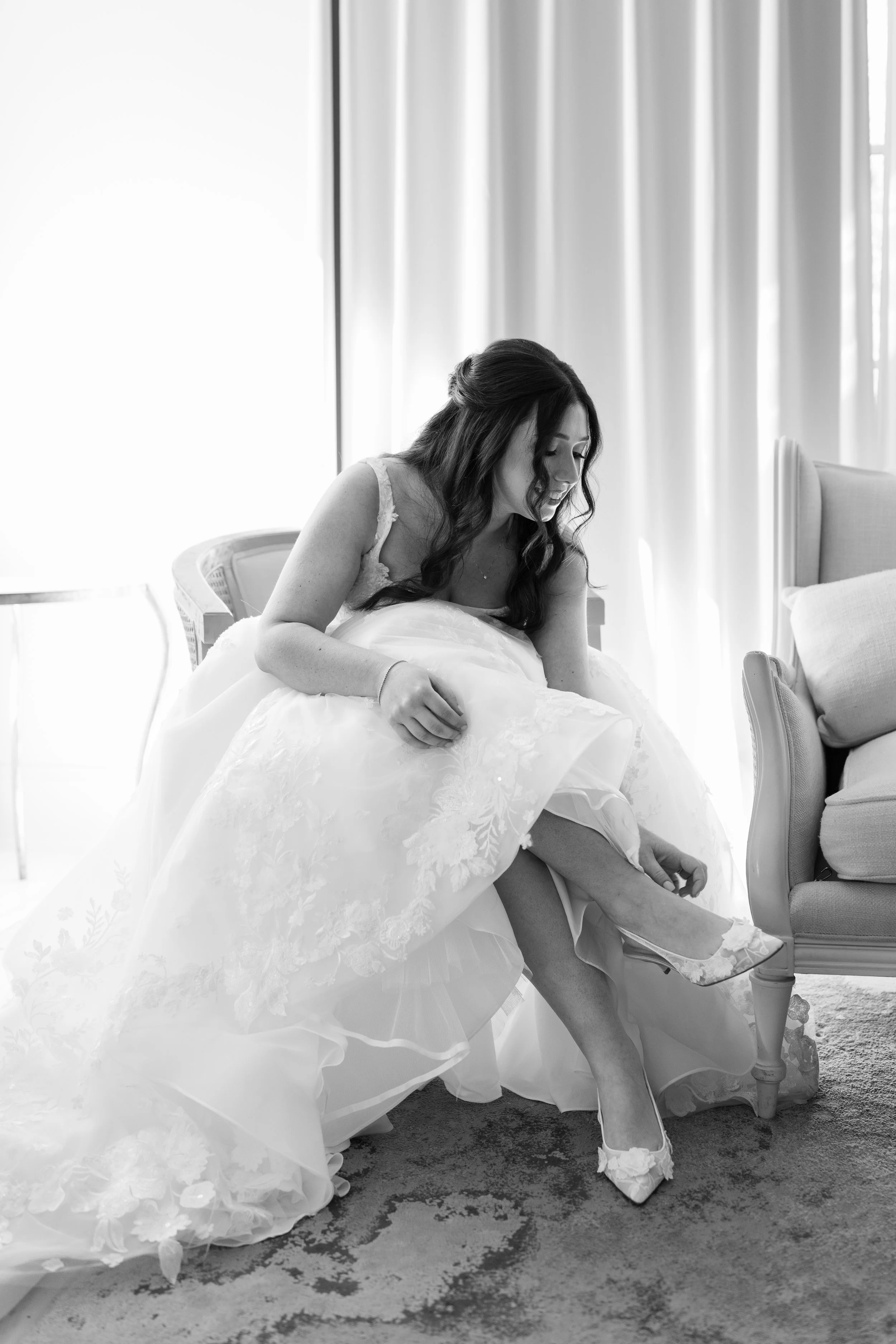 Once you book your appointment, you’ll come in for your first fitting where we pin and assess all necessary alterations. We’ll talk through your vision, comfort, and any custom requests. After that, your gown goes into alteration and we’ll schedule additional fittings as needed to refine the fit. Your final fitting is when everything is perfected and your dress is ready for your wedding day.